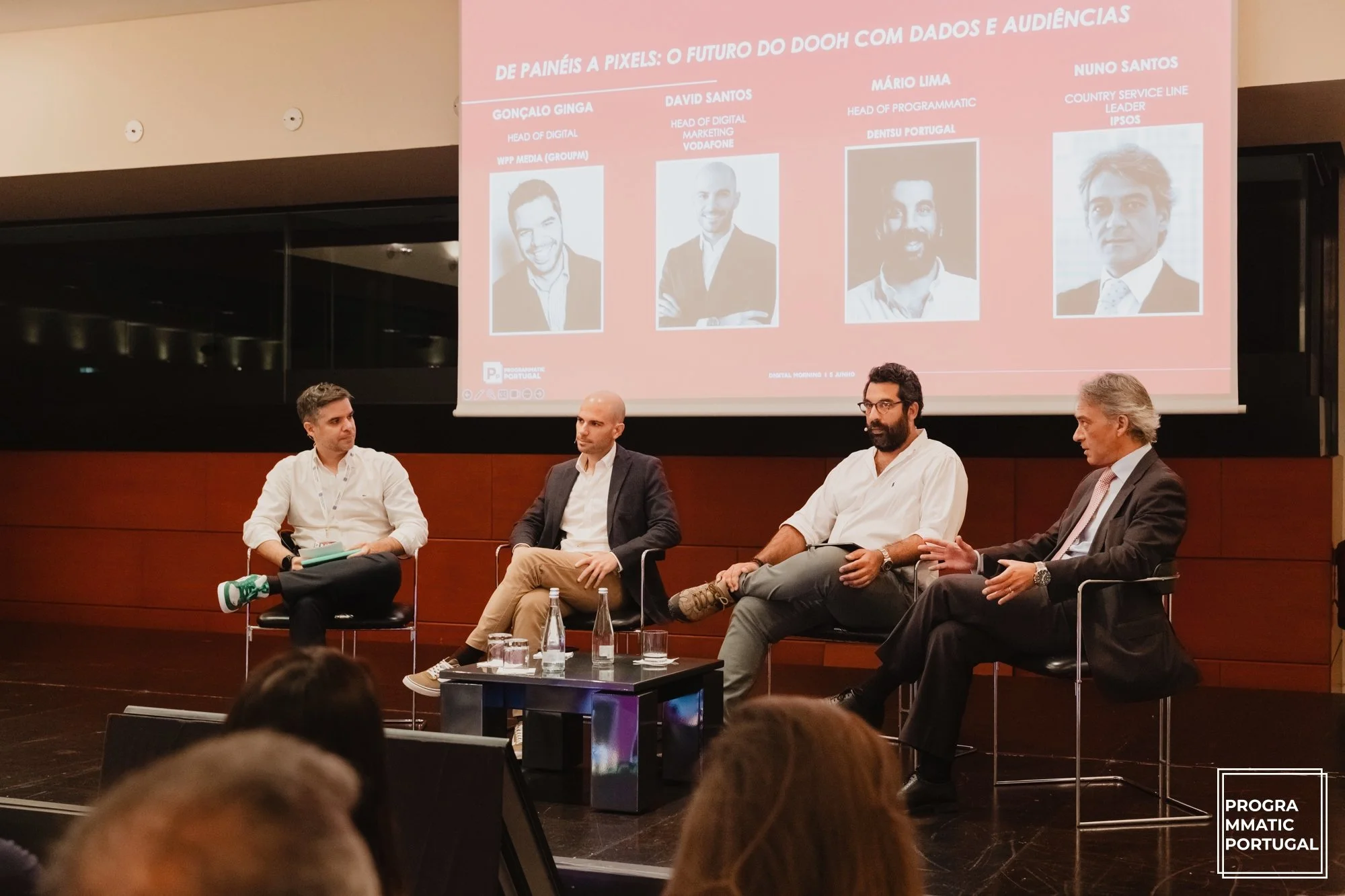 A última mesa redonda do dia estava reservada para o tema: “De Painéis a Pixels: O Futuro do DOOH com Dados e Audiências”, que contou com a presença de David Santos da Vodafone, Mário Lima da Dentsu e Nuno Santos, da Ipsos, moderado por Gonçalo Ginga da WPP Media. Um painel recheado de conteúdo relevante, sobre a forma como o mercado pode adaptar o meio out-of-home às métricas tradicionalmente associadas ao digital, os caminhos para a unificação de métricas e das audiências e a análise todos os painelistas sobre o que temos atualmente e para onde podemos ir.