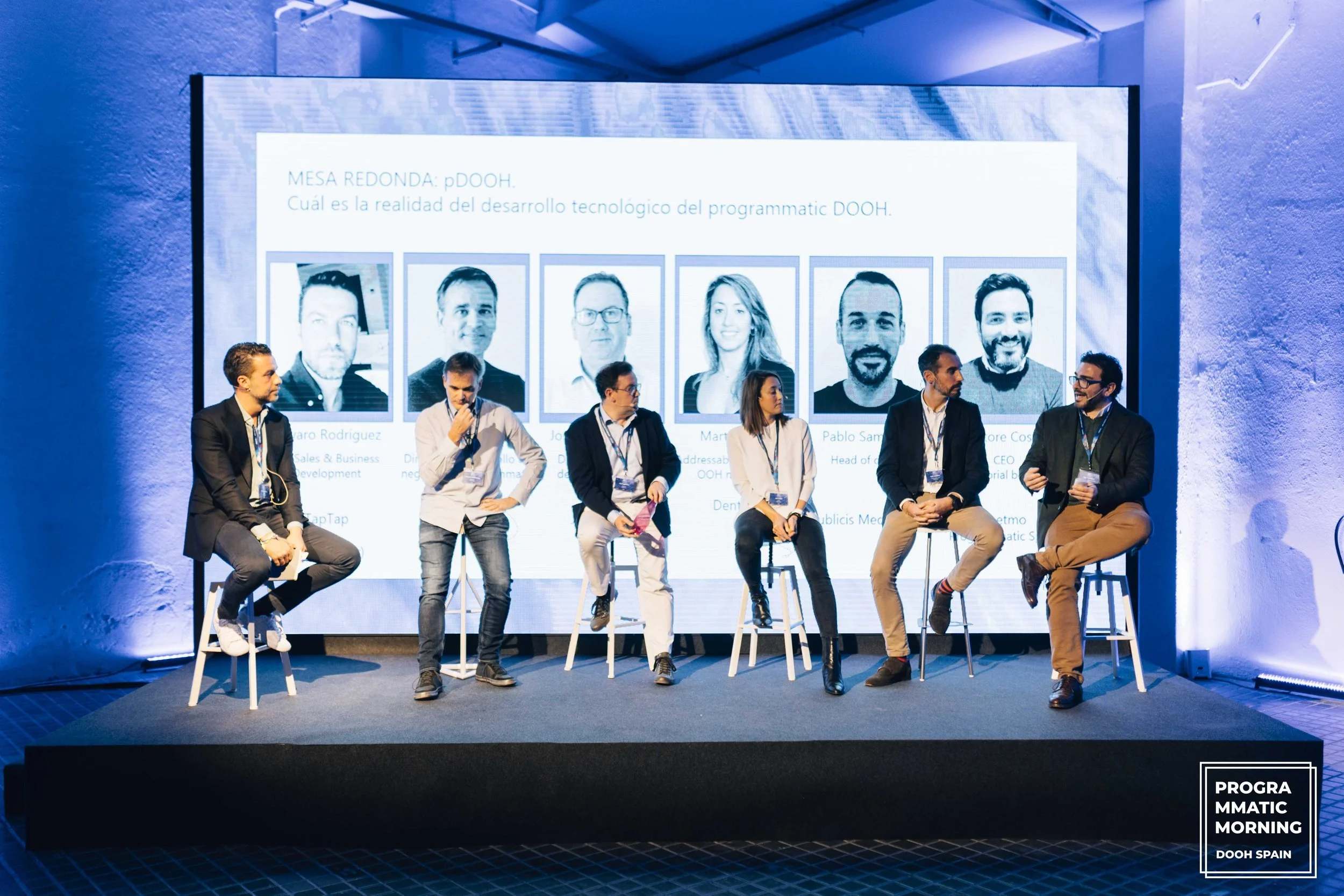 A penúltima mesa de discussão foi moderada por Álvaro Rodríguez, VP de Vendas e desenvolvimento de negócios da TAPTAP Digital, intitulada ''Qual é a realidade do desenvolvimento tecnológico da programação DOOH'' e na qual Marta López, Addressable & Delivery Operations Manager de Dentsu, Pablo Sampietro, Head of Digital da Publicis Media Lux (LVMH), Guillermo García-Maruny, Diretor de desenvolvimento de negócios da Broadsign e Salvatore Cospito, sócio de PROGRAMMATIC ESPANHA e CEO da REETMO.
