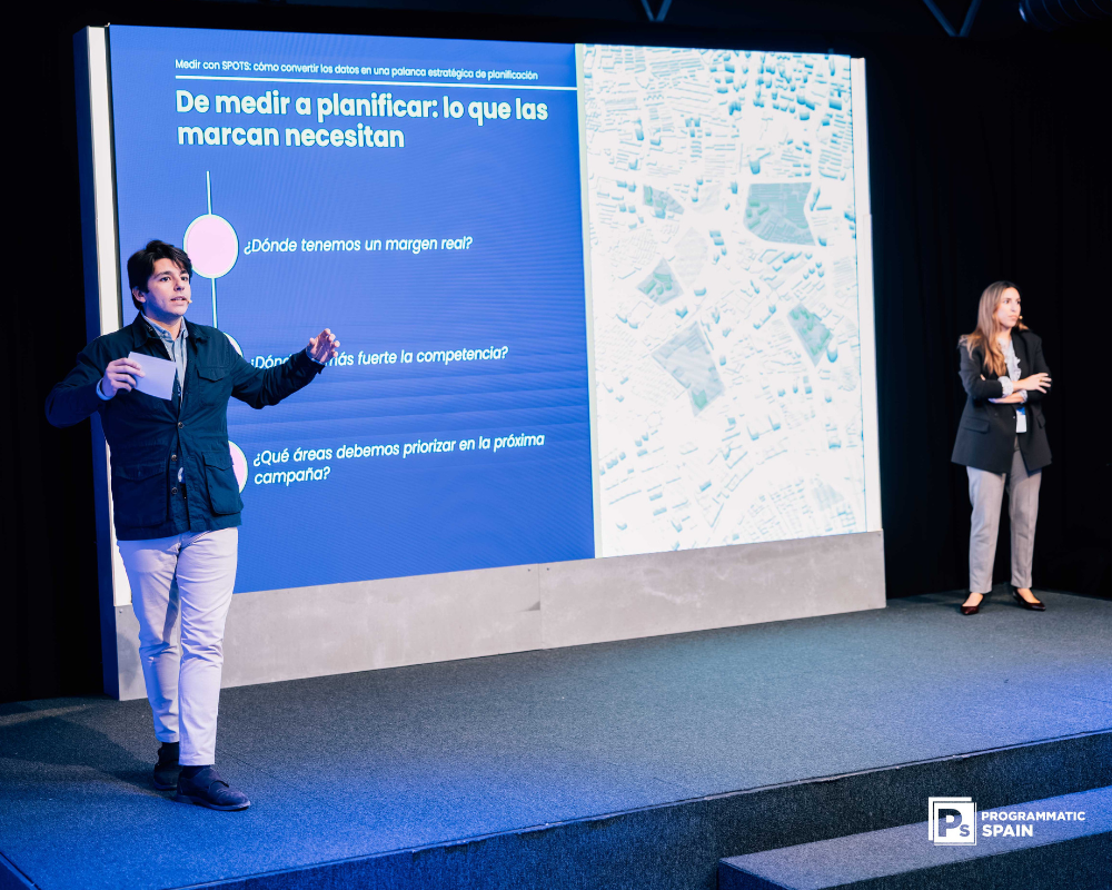 O encontro terminou com a apresentação “Medir com SPOTS, como transformar os dados numa alavanca estratégica de planeamento”, apresentada por Emilio Romay De La Vega, Sales Manager na Beintoo, e Virginia González, Senior Manager na Beintoo. A sua abordagem deslocou o foco da medição pós-campanha para a medição prévia, ou seja, para a utilização dos dados como ferramenta para decidir onde ativar, com que lógica e em que zonas faz sentido investir.